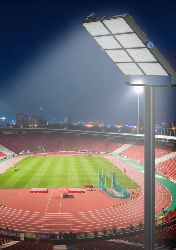 Auxiliary light poles on both sides and four high poles at the corners are the main features of typical large stadiums. The auxiliary light poles on either side are 20–30 meters high and add to the illumination of the running track and the stands' edges. The corner light poles are 35–50 meters high and have high-power LED floodlights to cover the inner field's core.