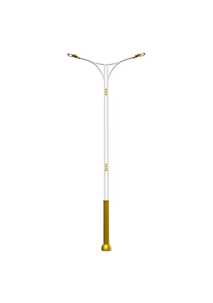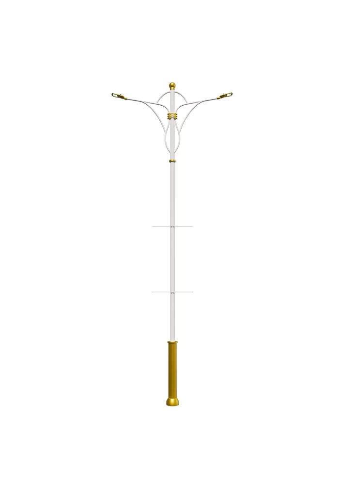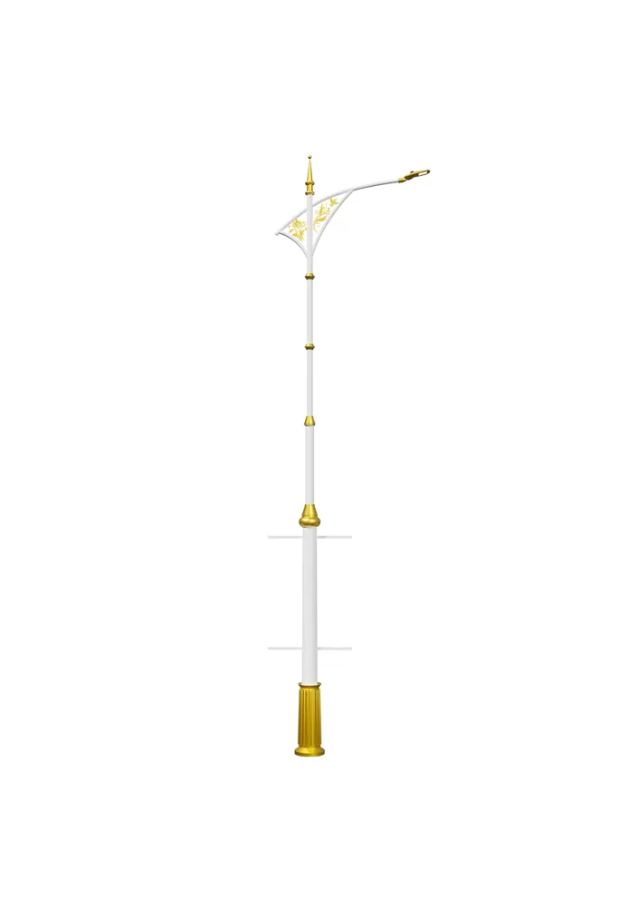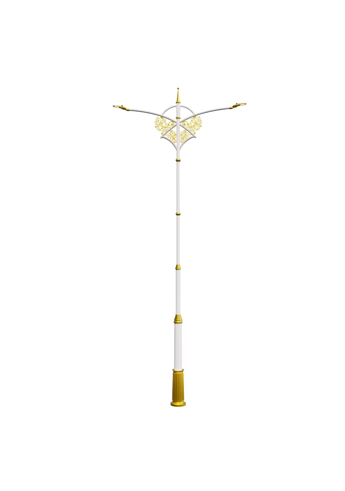 Color schemes for decorative light poles complement the environment, avoiding conflict with surrounding buildings and landscapes while ensuring accurate color reproduction at night.