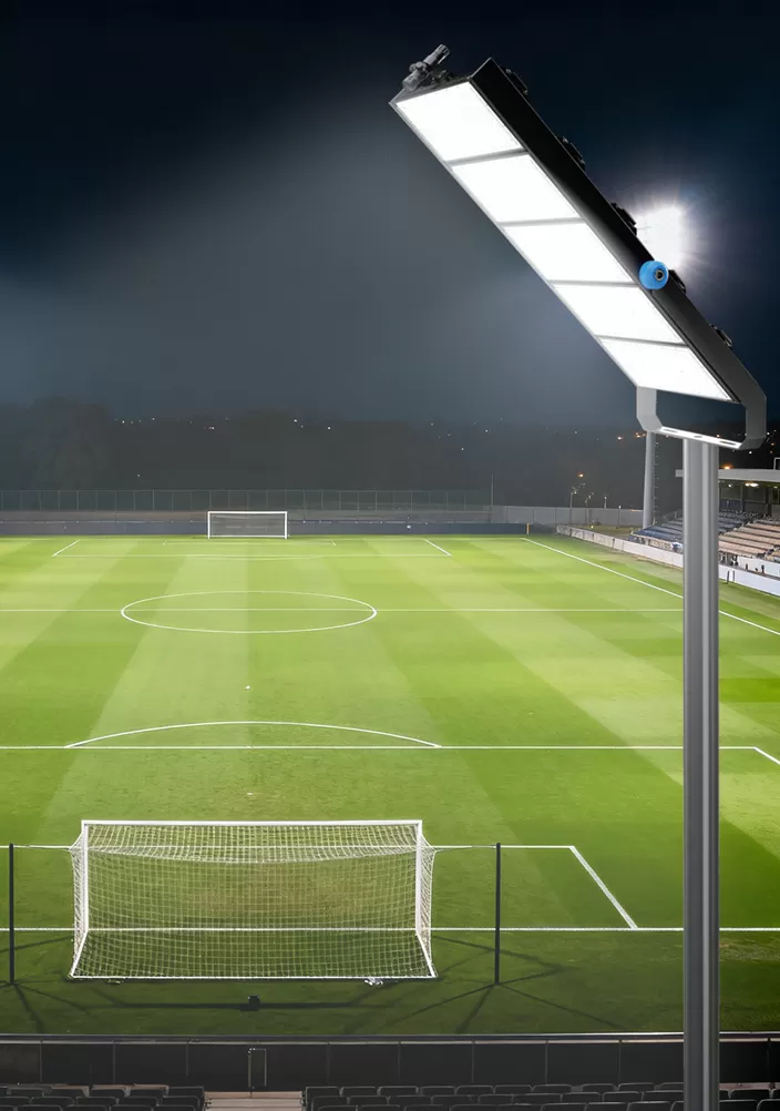 Tailored light distribution curves for the penalty area, midfield, and sidelines, with a 30% increase in vertical illuminance in the penalty area to guarantee that close-range offensive and defensive actions are clearly visible.