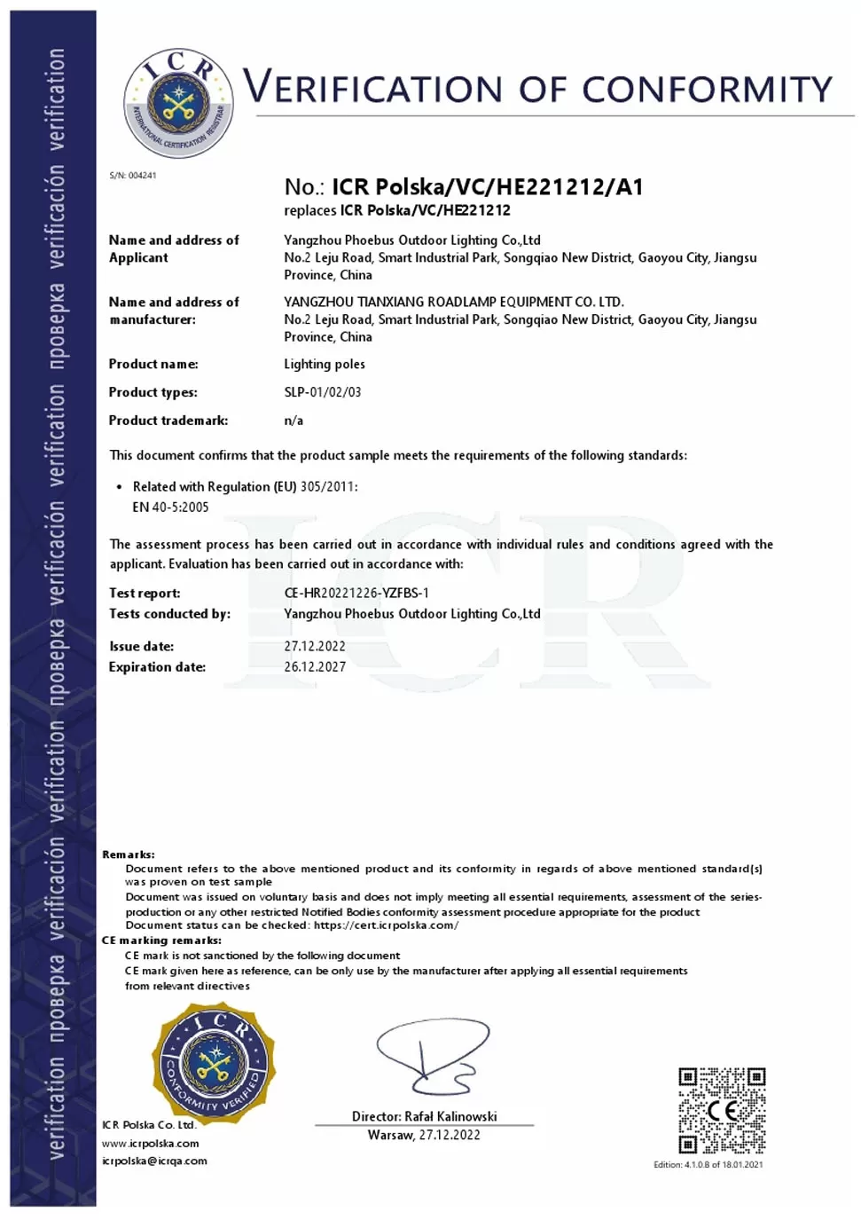 | Stiffener | With a big size to strengthen the pole to resist the wind | ||||||